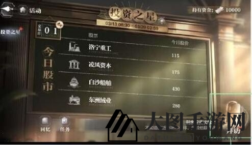 投资之道,财富之路!以上是《世界之外》投资之星活动指南,更多精彩内容,敬请关注手游网,小编将持续为您带来最新资讯!