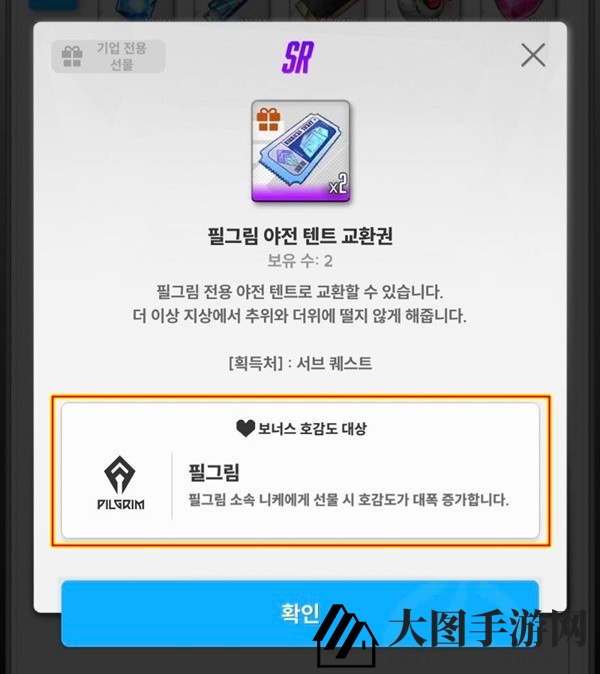 当送给特定公司或团队的妮姬时,某些礼物会大幅增加好感度。例如,赠送“Pilgrim Nike”时,“Pilgrim Field Tent Exchange 优惠券”会显著提升好感度。