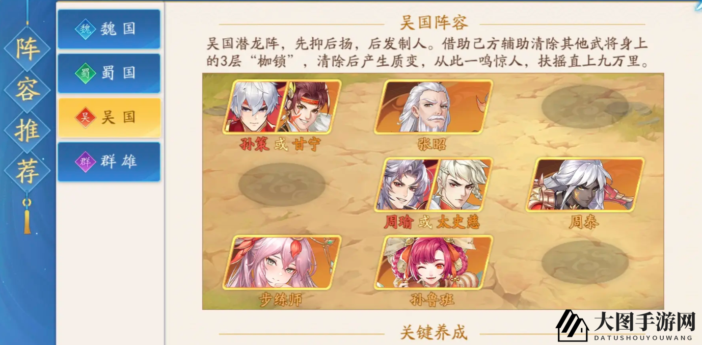 本篇吴国战队搭配秘籍就此揭晓,更多精彩攻略,敬请锁定手游网!