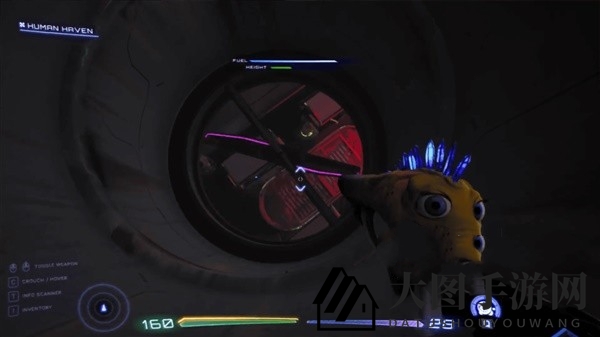 拿到钥匙卡后,回到家中,使用悬赏机器前往神秘之地“人类避难所”(Human Haven)。