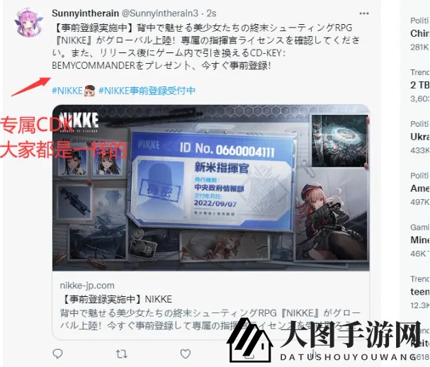 如果您有推特账户,可以按照提示进行分享。即使没有,也别担心,因为兑换码是通用的。