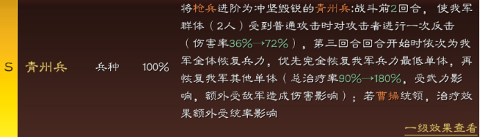 在减伤的保障下,队伍还拥有青州兵,准时在第3回合恢复生命值,这为运气不佳的情况提供了较好的承受能力,也能顺利度过前三回合。