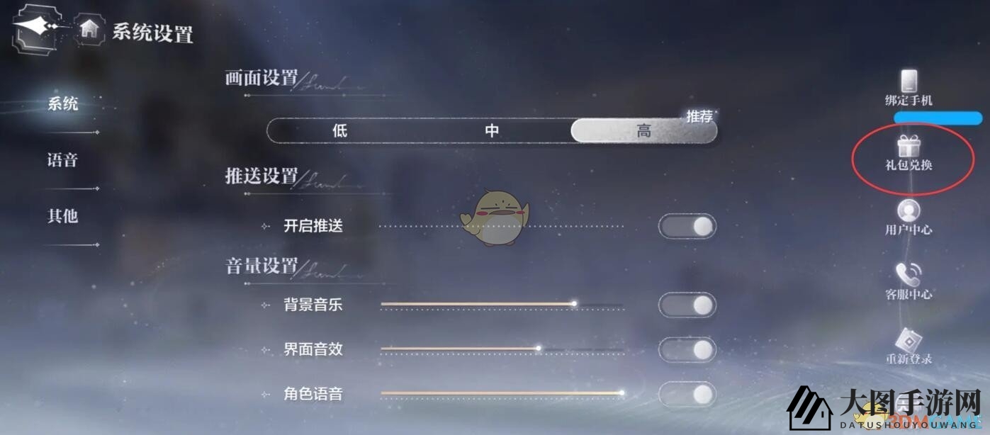 3、在设置页面,选择右侧的礼包兑换选项。