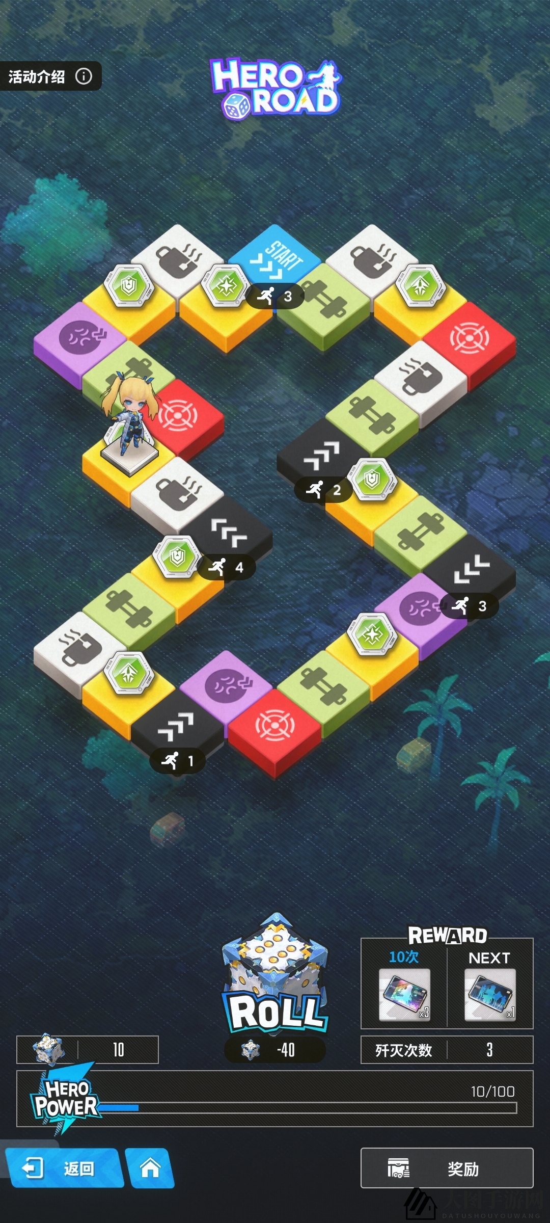 使用英雄骰子,可参与小游戏【HeroRoad】,有机会获得研究材料、招募券等丰富奖励。