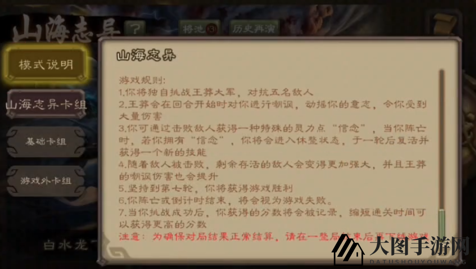 注意:为确保游戏结算无误,请在一局结束后再退出游戏