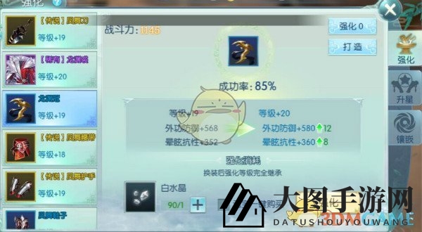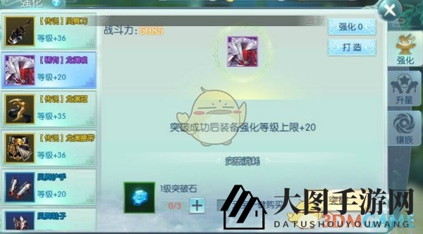 通过消耗游戏内强化道具——水晶,可以提升装备等级,这是玩家初期追求的成长路径。强化成功率与装备等级成反比,低等级装备强化成功率更高。不同部位的装备强化所需水晶数量不同,当达到一定等级后,需突破才能继续强化,突破后装备品质提升,可继续强化。