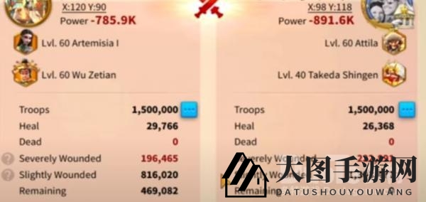 阿尔特米西亚克制阿提拉,但副将上,君坦克制阿提拉,武则天被阿提拉克制,因此阿尔特米西亚+君坦的战损要比阿尔特米西亚+武则天好一些。