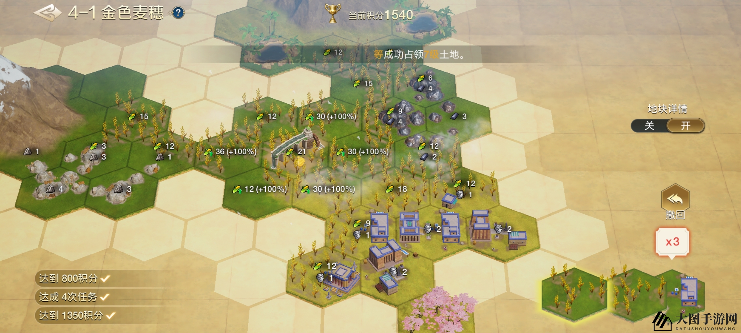 深入挖掘《世界启元》文明创想第四章布局的奥秘,掌握地块布局的独门秘籍!在这款游戏中,每一块土地都蕴含着不同的元素,任务挑战常常要求相邻土地的元素一致且数量达标。通过巧妙的土地布局,轻松完成挑战,通关不再是遥不可及的梦想(土地可旋转,但顺序固定)。随着关卡的推进,布局策略变得更为复杂,三星通关不再是难题,搭配技巧与得分上限也随之大幅提升。