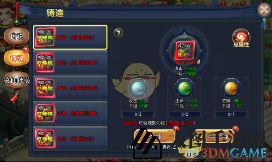 2、铸魂过程中,生命、攻击、防御逐级增强。