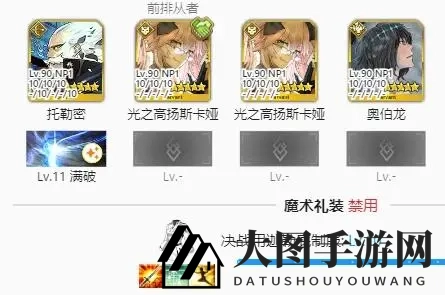 T3:奥伯龙全技能给托勒密,决战服1,托勒密13后释放宝具。