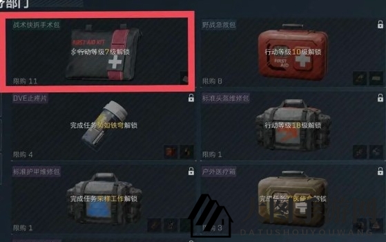 2、空间允许时:额外携带手术包和止痛药,以消除游戏中的不利影响。