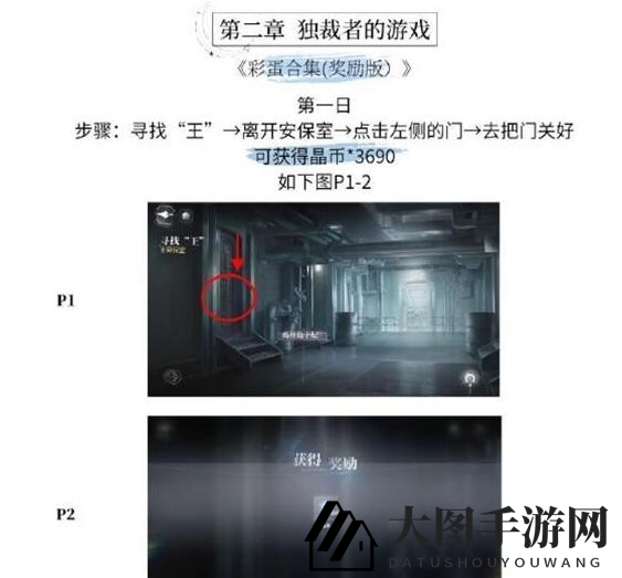 1、在《世界之外》独裁者的游戏里,首日寻王之旅中,离开保安室,轻触左侧的门并确保门已关闭,即可轻松获得晶币*369。