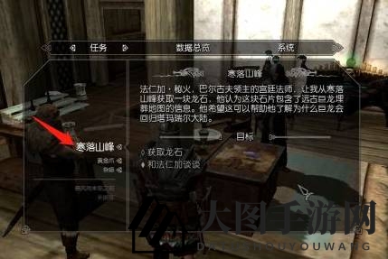 3. 与法仁加对话,接受“寒落山峰”任务。
