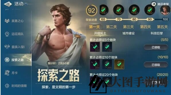 探索之路任务奖励丰厚,任务本身就有大量奖励,而当你的探索进度达到100%时,你还将额外获得45次抽卡机会以及一位强大的戴维王。