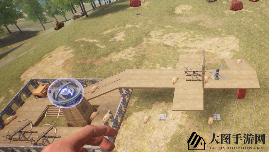 诱导器围堵,仅留半墙,丧尸被卡,无法逃脱也不攻击。此时可随意布置防御设施。