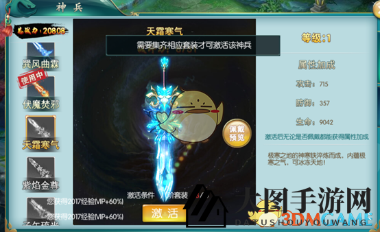 《九幽仙域》内藏九大神兵,各具特色,集齐套装方能激活。提升神兵等级,每日任务中的绿翡翠是关键,等级越高,所需材料越丰富。