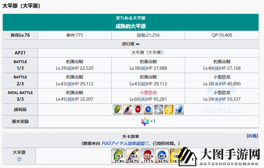另外,【Lostbelt No.7 奇琴伊察】、【Lostbelt No.7 大平原】、【Lostbelt No.7 奇科莫斯托克】、【Lostbelt No.7 提卡尔遗迹】的平均AP值在44~46之间,副产物分别是黑灰、太阳皮(新材料)、混沌之爪、凶骨。