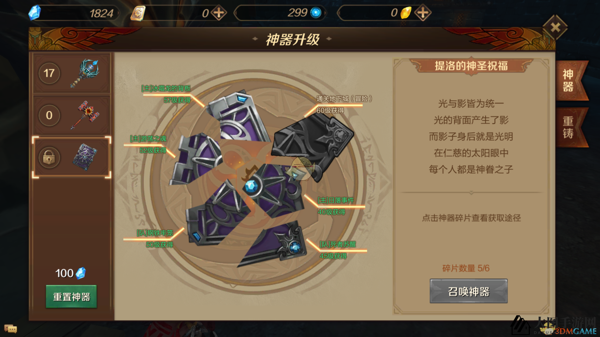 每件神器最多升级18级,每一次提升都将为角色增添一项核心属性。