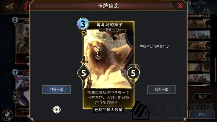 角斗场的狮子:除非每条战线中各有一个己方生物,否则不能召唤。