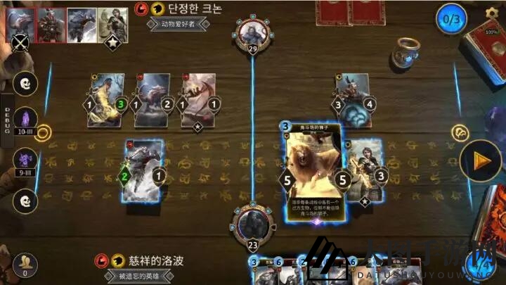 后手拥有3次法力戒指,可考虑留下双侧召唤单位+狮子的组合,目标3费出动狮子。