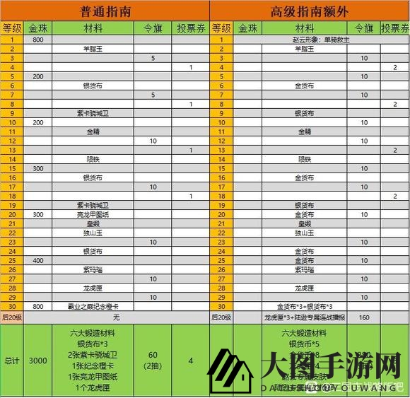 以下是对比普通指南与328高级指南所能获得的奖励详情: