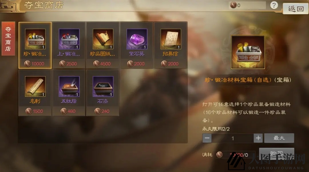 剿敌赏金可在夺宝商店中兑换物品,包括材料宝箱、图纸、紫石英、招募信、名刺、五牲脂和石漆等。其中前四种物品限购数量极少,建议优先兑换。