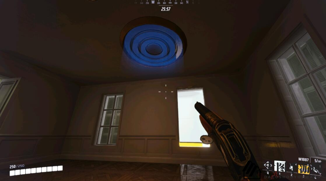 将跳板斜置,按下W键直至落地,准星指向正前方,着陆点依然是钩锁处。