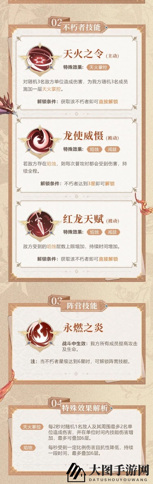作为火与龙的化身,塔丽亚在战场上犹如一位破坏者。她的技能不仅能够造成毁灭性的打击,还能让敌人饱受“焰蚀”的折磨,陷入苦战。