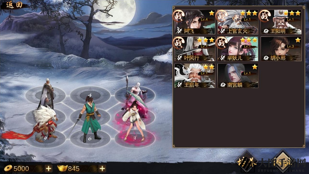 古横城:空虚公子(2回合打断)、叶风行(3回合打断)、谈文康或梅亭晚(4回合打断)、王阳明(奶)、主角(21212)接下来自动;