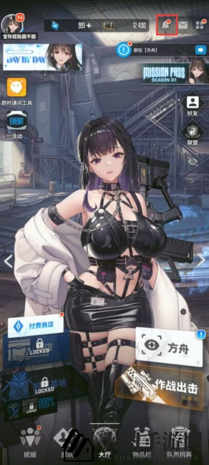 1、进入游戏,点击界面右上角的铃铛