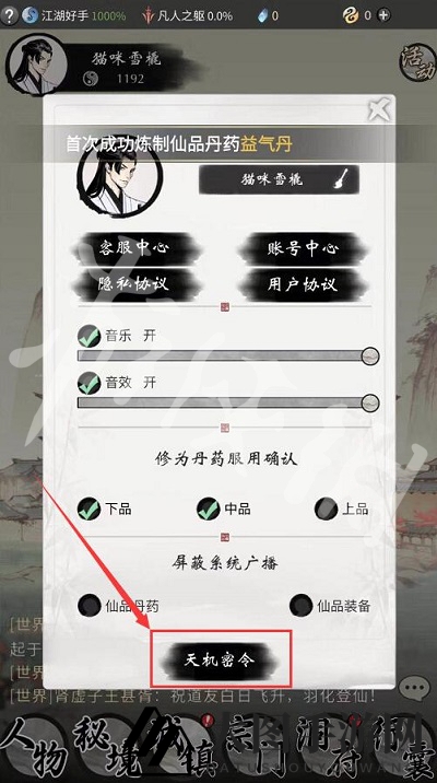 在头像下拉菜单中找到天机秘籍。