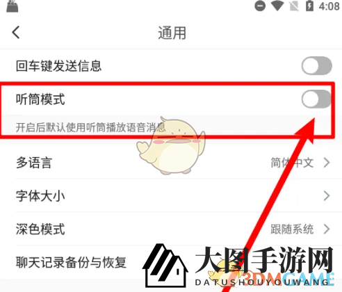 《与你》听筒模式设置一图即明。更多实用攻略,敬请锁定手游资讯平台。