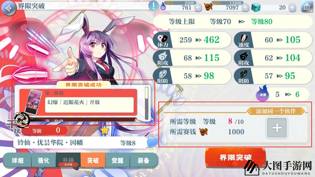 突破不仅能提升六维属性,还会增加出击消耗