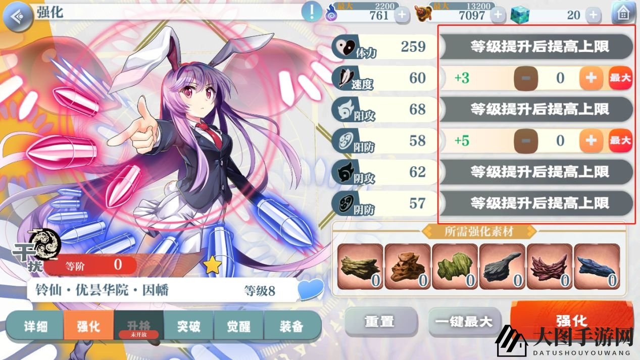 强化:利用游戏内掉落的香木来提升角色属性,强化上限随角色等级的提升而增加