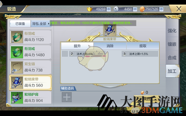 选择加工目标,提升附加属性。注意:只有带有附加属性的装备才能进行加工。不断积累附加属性,装备的属性加成将得到显著提升,包括攻击、生命、防御等方面。