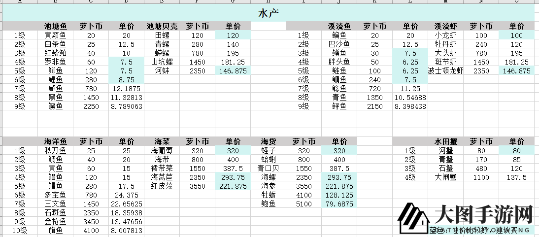 低级鱼(4、5级溪流鱼最好卖,自己钓鱼太拼概率,不贵一般就买了,而且≥6级可换海底谜语物品)