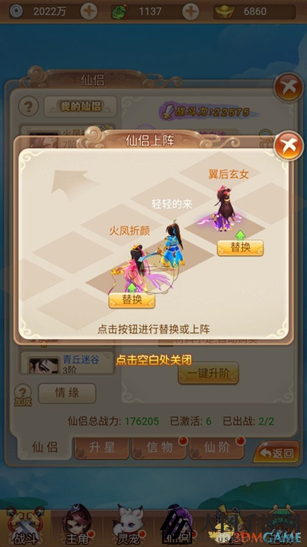 在战斗中,主角、宠物、仙侣齐上阵,战前可以对阵容进行精心配置。仙侣可布阵两个,全部参与战斗;宠物可布阵三个,同时出场一个,其余两个作为后备力量。当主战宠物被击败时,后备宠物将迅速接替战场。因此,如何配置阵容,体现了玩家的策略智慧,合理的布阵能带来更强大的战斗力。