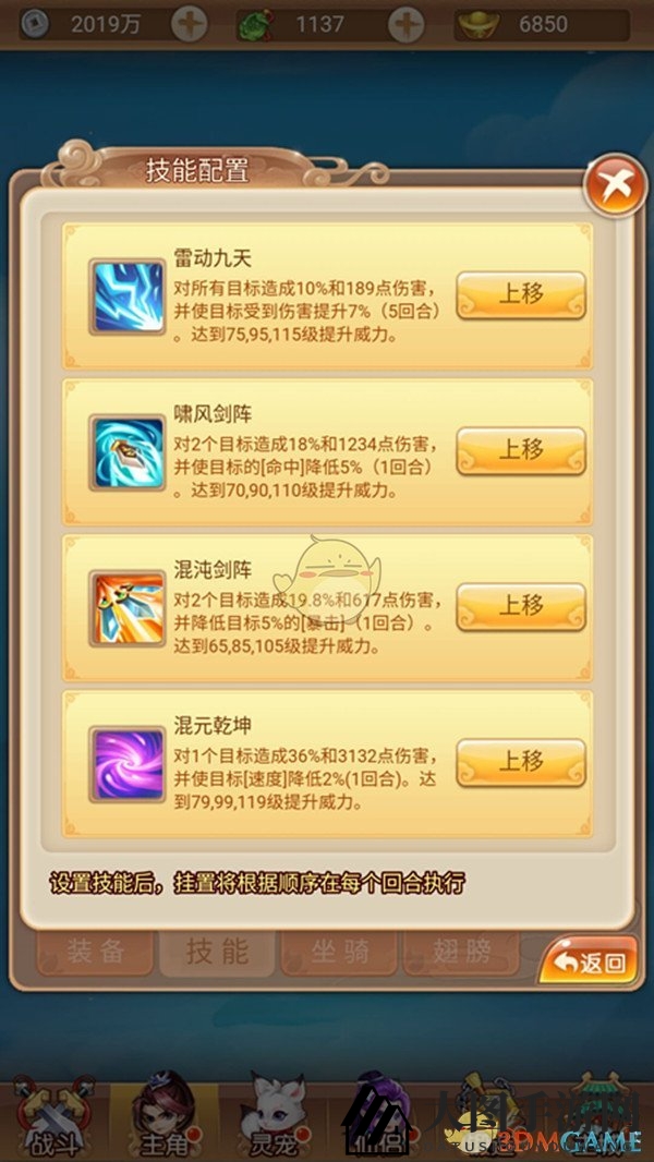 以昆仑职业为例,将【雷动九天】设置为首发技能,可以优先消灭小怪,为后续攻击增加伤害;再将单体技能放在最后,以应对最后一回合只剩一个怪的情况,从而实现强大的战斗效果。赶紧拿出小本子记下来吧!
