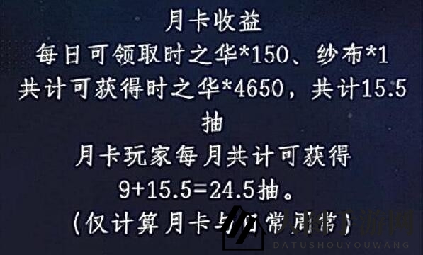 月卡玩家每月共计可获得9+15、5=24、5抽。