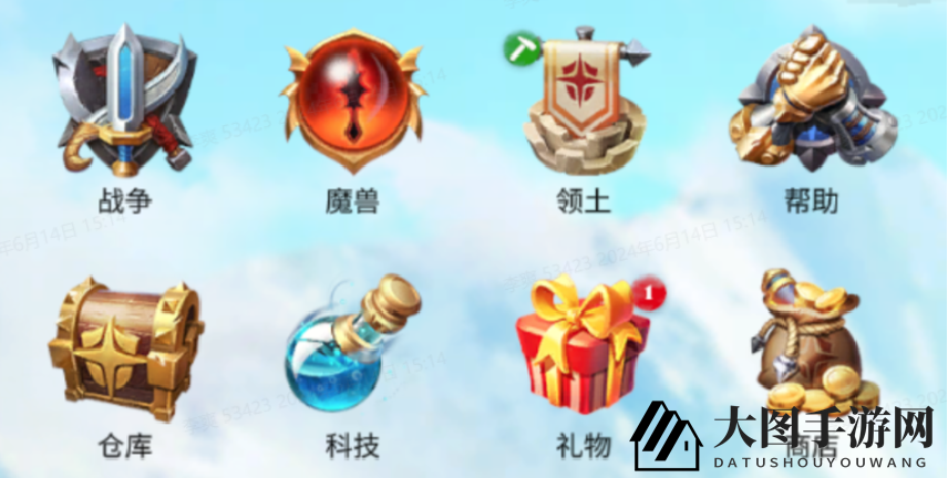 科技:联盟科技分为发展、领土、战争和魔兽四个模块。发展科技助力联盟扩张,领土科技提升领土收益,战争科技增强联盟作战能力,魔兽科技则专注于魔兽属性提升与召唤加速。