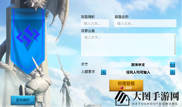 轻点游戏界面右下角的【联盟】按键,即刻进入联盟界面。在此,您可创建联盟或加入现有联盟。创建联盟需投入1500宝石,并需填写包括联盟简称、名称、公告、入盟要求和旗帜在内的基本信息。