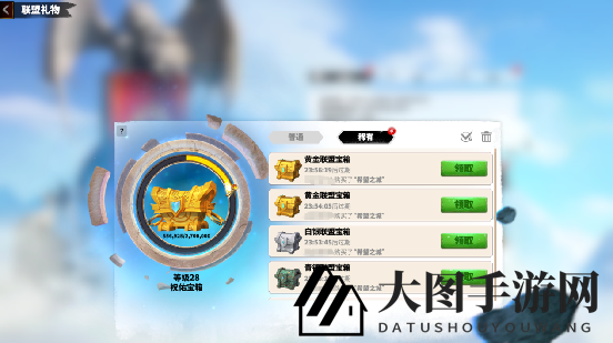 礼物:奖励系统分为普通奖励和稀有奖励,包括盟友攻城宝箱和购买礼包获得的宝箱。开启宝箱可获得钥匙点,积累足够钥匙点后,联盟成员可开启祝佑宝箱,获得丰厚奖励。