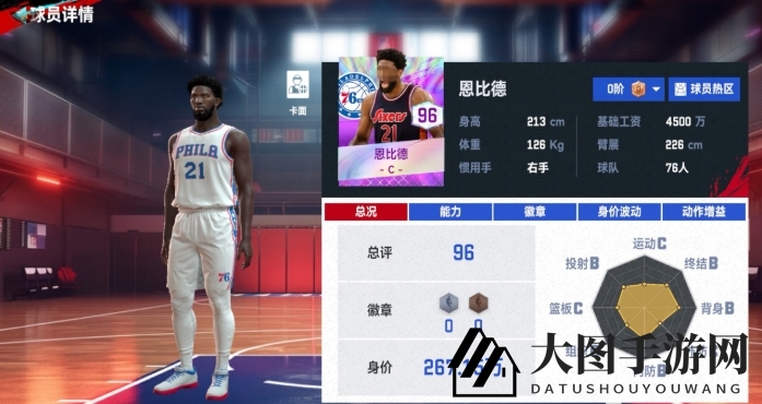 与其他同位置球员相比,恩比德的性价比极高,仅需294.69万,可谓物超所值。各项基础属性均衡,接球94分,力量91分,使他能在篮下迅速得分,并在对抗中充分发挥身体优势,后期携带徽章后效果更上一层楼。