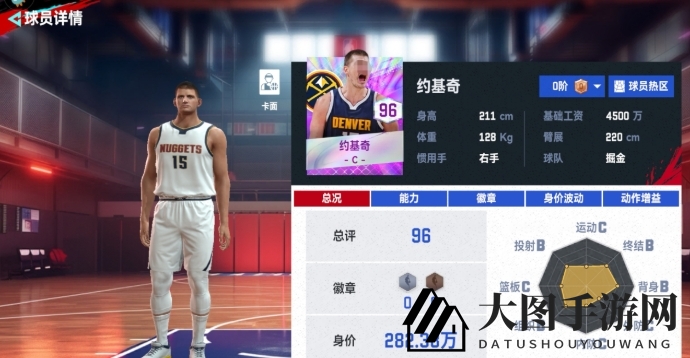 在众多卡牌中,约基奇以其卓越的背身技巧脱颖而出,背身初始数值高达83,无论是背身后仰还是背身控制,都能轻松驾驭。力量数值初始状态下达到了88分,彰显其在身体对抗中的优势,也让他在篮下的争斗中更具优势。