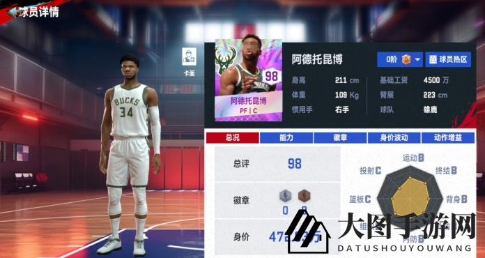 阿德托昆博在游戏内堪称全能战士,其篮板和防守属性十分出色,在争夺篮板球和防守端都能有上佳表现,如能有效限制对手的突破,给对方进攻带来巨大压力。不过,字母哥的投射能力相对较弱,玩家需谨慎把握出手时机。