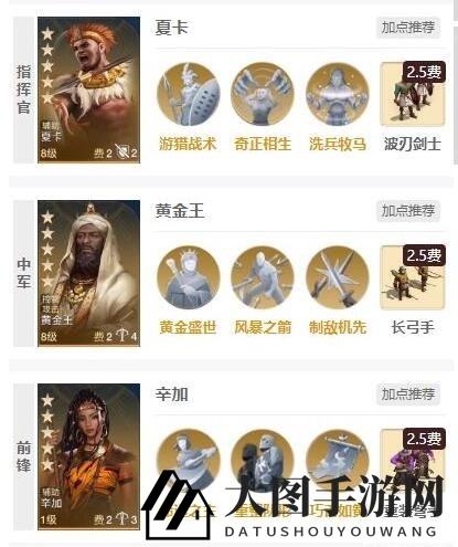 1、阵容组合一:辛加+夏卡+黄金王