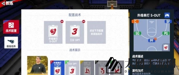 综合这些要素,采用4外1内的站位,搭配能为杜兰特提供进攻空间的中锋,以及外线的强硬防守者,打造最佳战术效果。