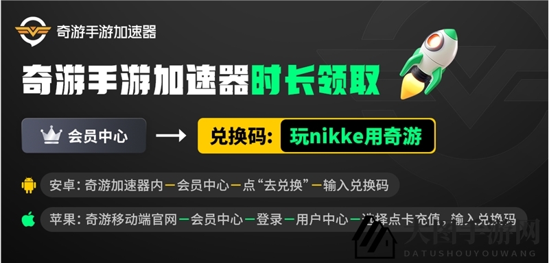 如未使用过此加速工具,请在会员中心输入兑换码“玩nikke用奇游”,领取加速时长。