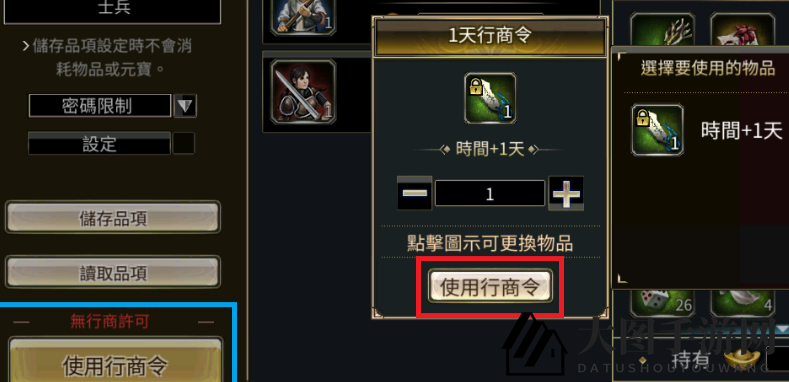 1、完成指定任务,解锁摆摊功能,获取【行商令】资格。行商令可通过银元宝或金元宝兑换。