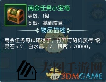每完成一环可获得对应经验;每10环为一小周期,奖励“商务任务小宝箱”;每100环为一大周期,奖励“商会任务大宝箱”